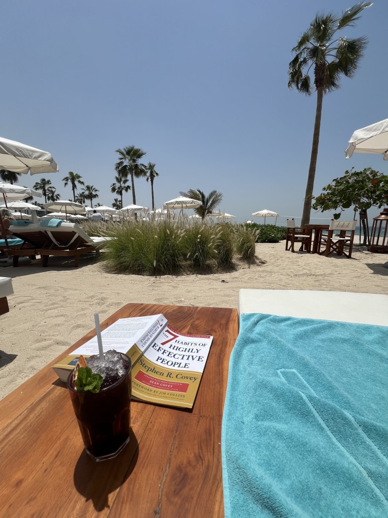 Yesterday, I decided to take a step back and prioritise my well-being by working from the beach, which is an easy thing to do in Dubai. Lately, I’ve realised that neglecting self-care can lead to counter-productivity and as Stephen Covey wisely pointed out, to deliver golden eggs, the goose needs to be nurtured.