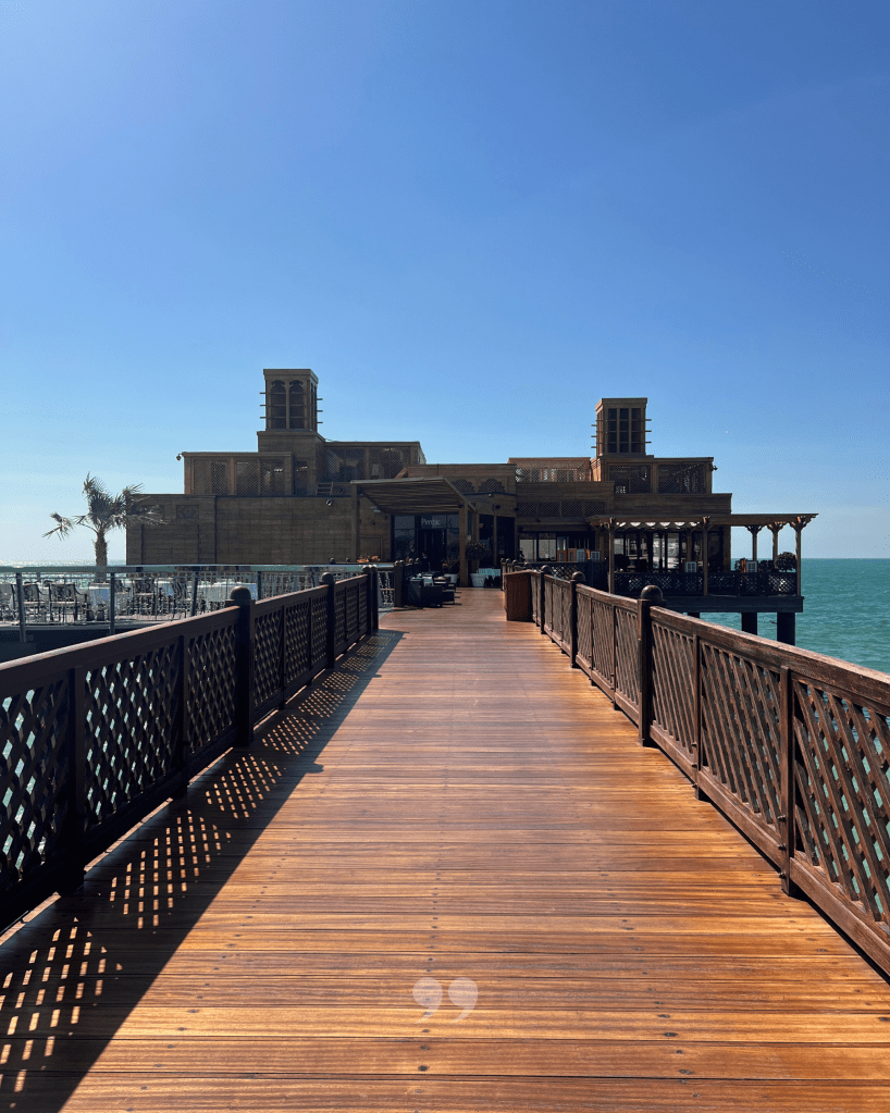 Before reaching Pier Chic, we enjoyed a leisurely stroll through the scenic grounds of the Jumeirah Al Qasr Hotel. Lush greenery, palm trees and crystal green lagoons lined our path, leading us past the inviting pool area. As we walked, we couldn’t help but feel a sense of calm and excitement as we made our way towards the pier.