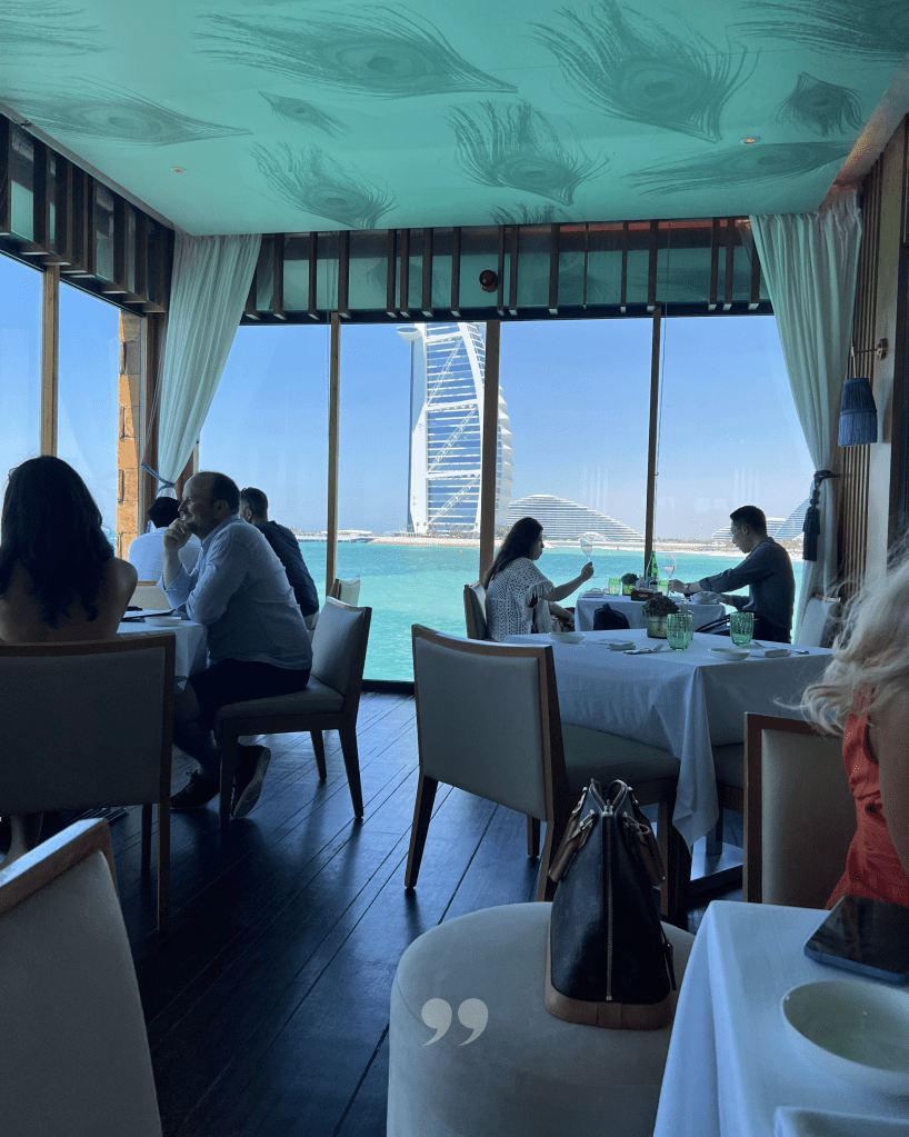 Pier Chic’s atmosphere was truly enchanting. The stylish decor, complemented by sweeping views of the Arabian Gulf and the iconic Jumeirah Beach Hotel and Burj Al Arab, fostered a relaxed setting ideal for savouring both delectable cuisine and cherished camaraderie.