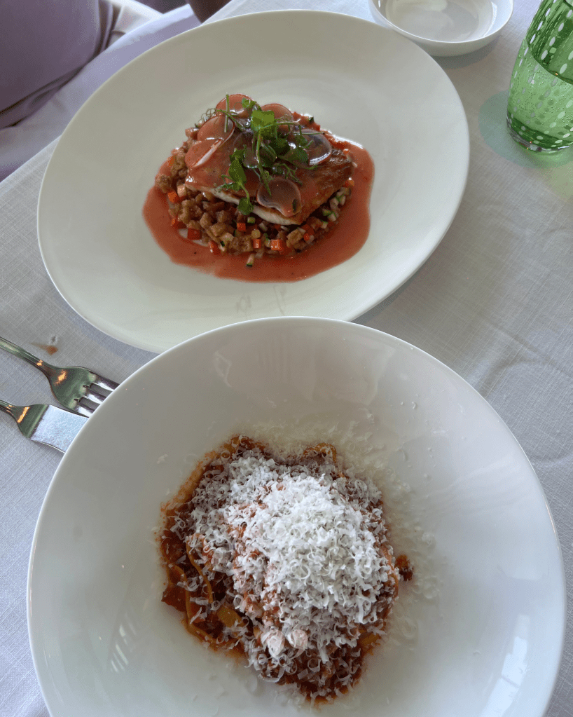 For main, I had the Tagliatelli Alla Bolognese with most of the group followed suit with the Tagliatelli Alla Bolognese, while another friend relished the Penne All’ Arrabbiata. Meanwhile, our friend who explored the à la carte menu treated themselves to the Branzino & Panzanella.
