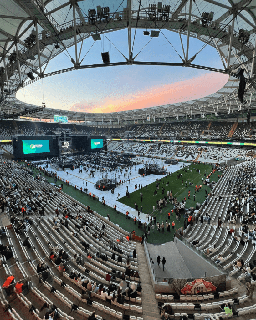 The concert was held at Tüpraş Stadyumu, home to the Turkish football team Beşiktaş. Before the concert, we grabbed a quick dinner at the stadium, consisting of a tasty chicken dürüm and a bag of crisps!