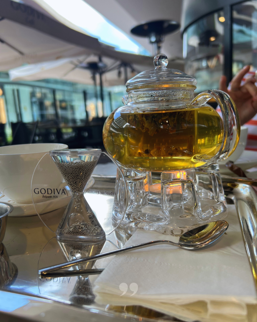 The next morning, we returned to Zorlu Centre for more shopping and culinary experiences. Our day began at the Godiva Café, where I enjoyed a refreshing ginger, cinnamon and herb tea, while my mum savoured a rich coffee. Each drink was accompanied by two delicious Godiva dark chocolates, setting a delightful tone for the day. We then headed to Zara, where we spent a solid couple of hours indulging in retail therapy.