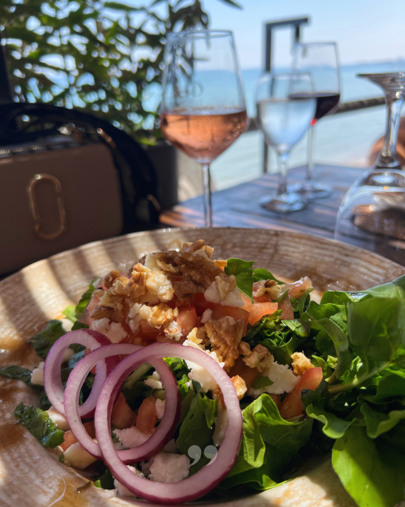 Though seafood is the star at Körfez, the menu includes a variety of options to suit all preferences. As someone who isn’t a huge seafood fan, I was delighted by the diversity of the offerings. I enjoyed a couple of glasses of rosé accompanied by a rocket and feta cheese salad and chicken goujons served with potato wedges and veggies. The dish was tasty, with the chicken goujons crispy on the outside and tender inside, perfectly complemented by the flavourful salad and hearty sides.