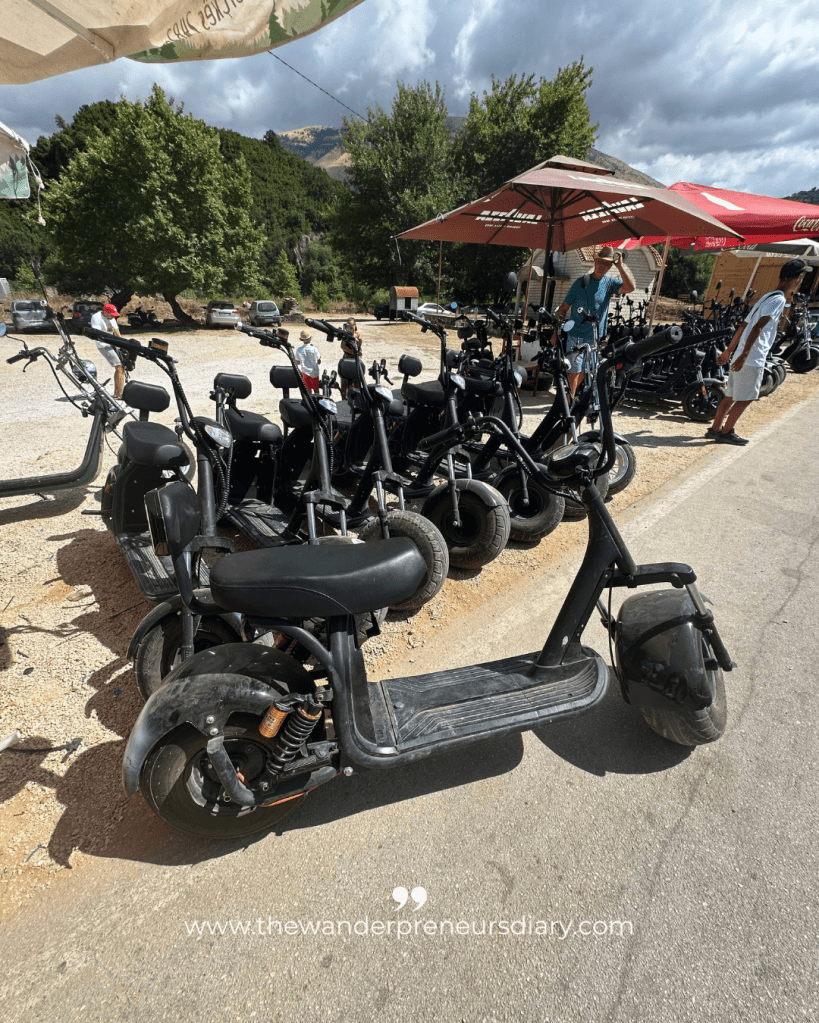 You can’t take the bikes all the way to the Blue Eye itself. There’s a section near the end of the trail where everyone leaves them before continuing on foot. It’s an open area with plenty of space to park and you’ll see lots of other bikes lined up. Just make sure you take the keys with you and remember which bike number is yours! There are quite a few and they all look identical, so it’s worth taking a quick photo of your bike and its number just in case.